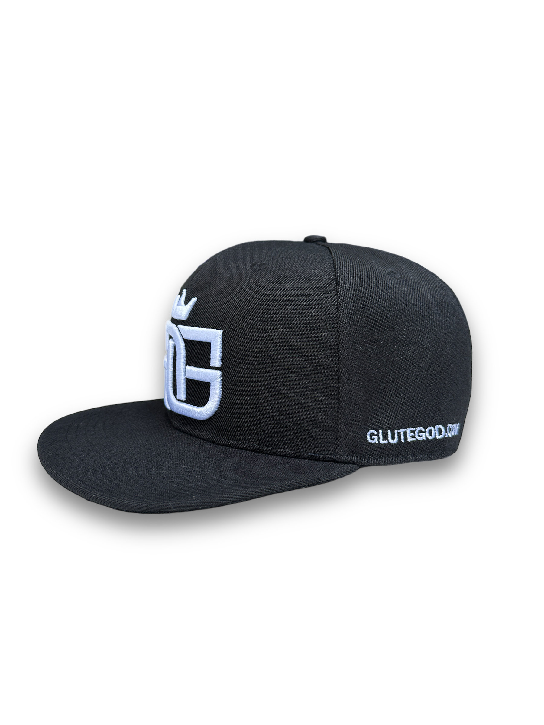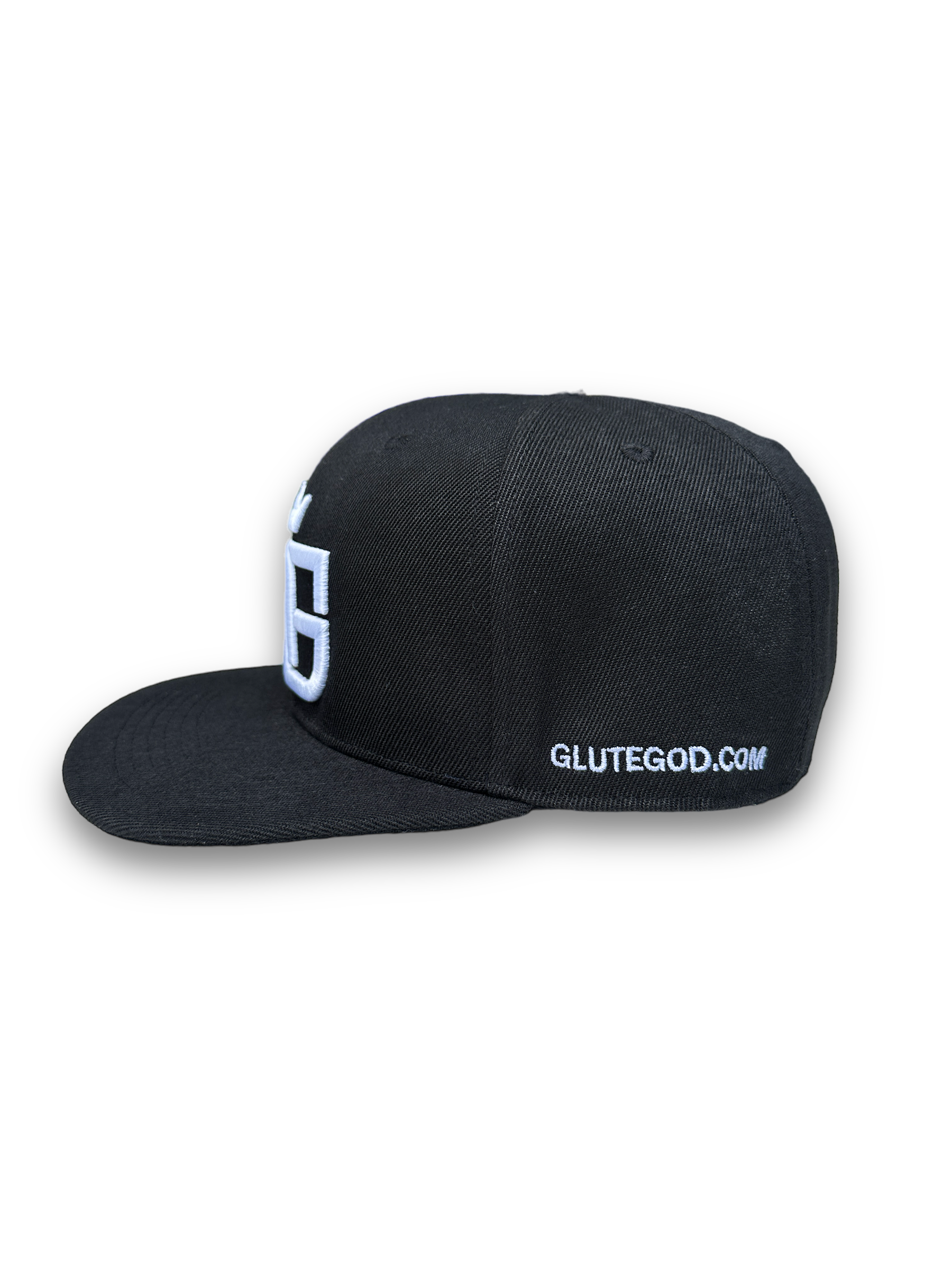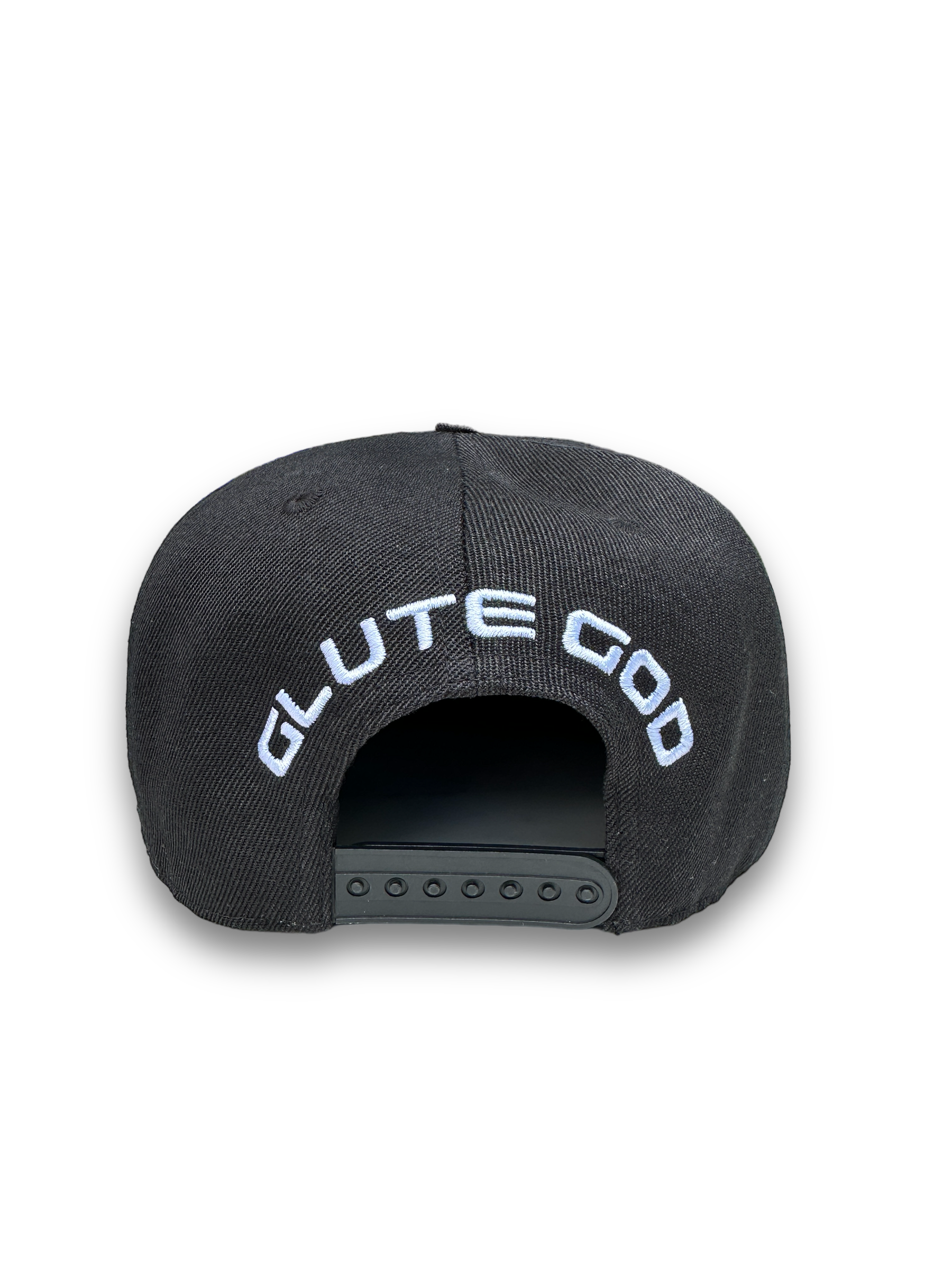 The Glute God Snapback features our Logo 3D embroidered at the front panels with a snapback closure at the rear and a black undervisor.
