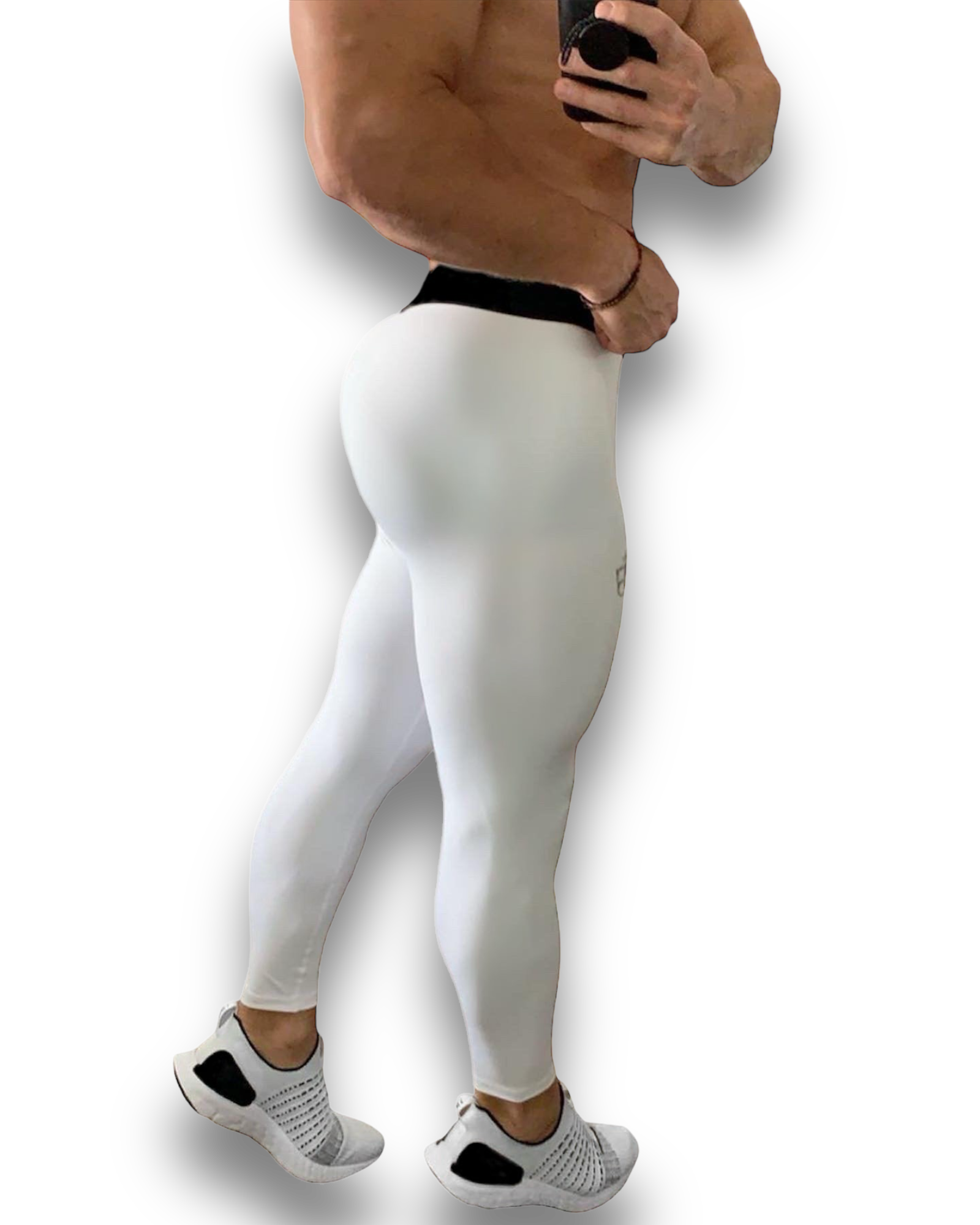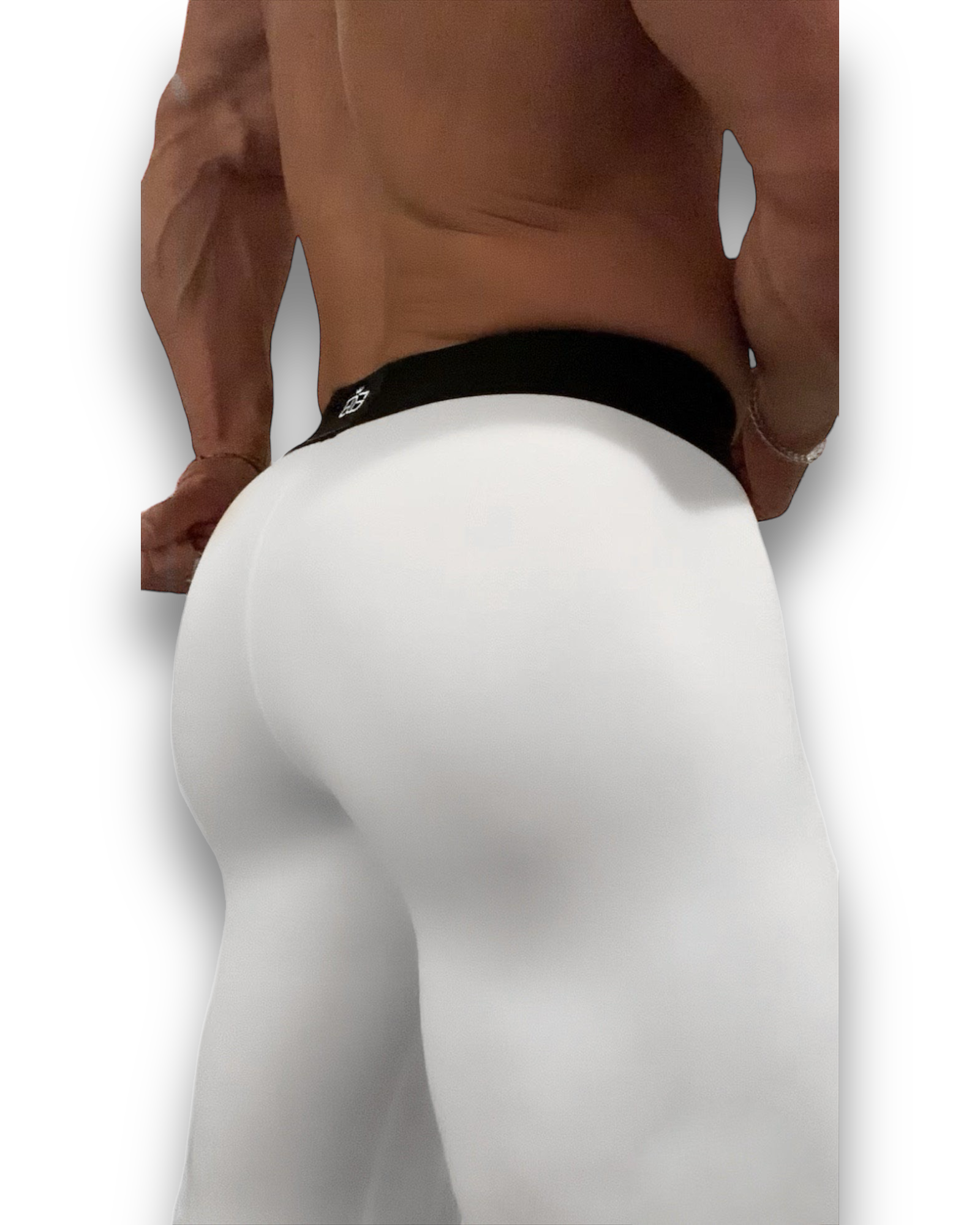 Step up your workout game with the Pure White Signature Leggings. Designed for the athletic man who wants the perfect mix of performance, style, and a touch of cheeky confidence, these men's workout leggings will have you turning heads while you crush your goals. Whether you're pushing through intense sessions or chilling after a workout, these leggings are built for both comfort and style.