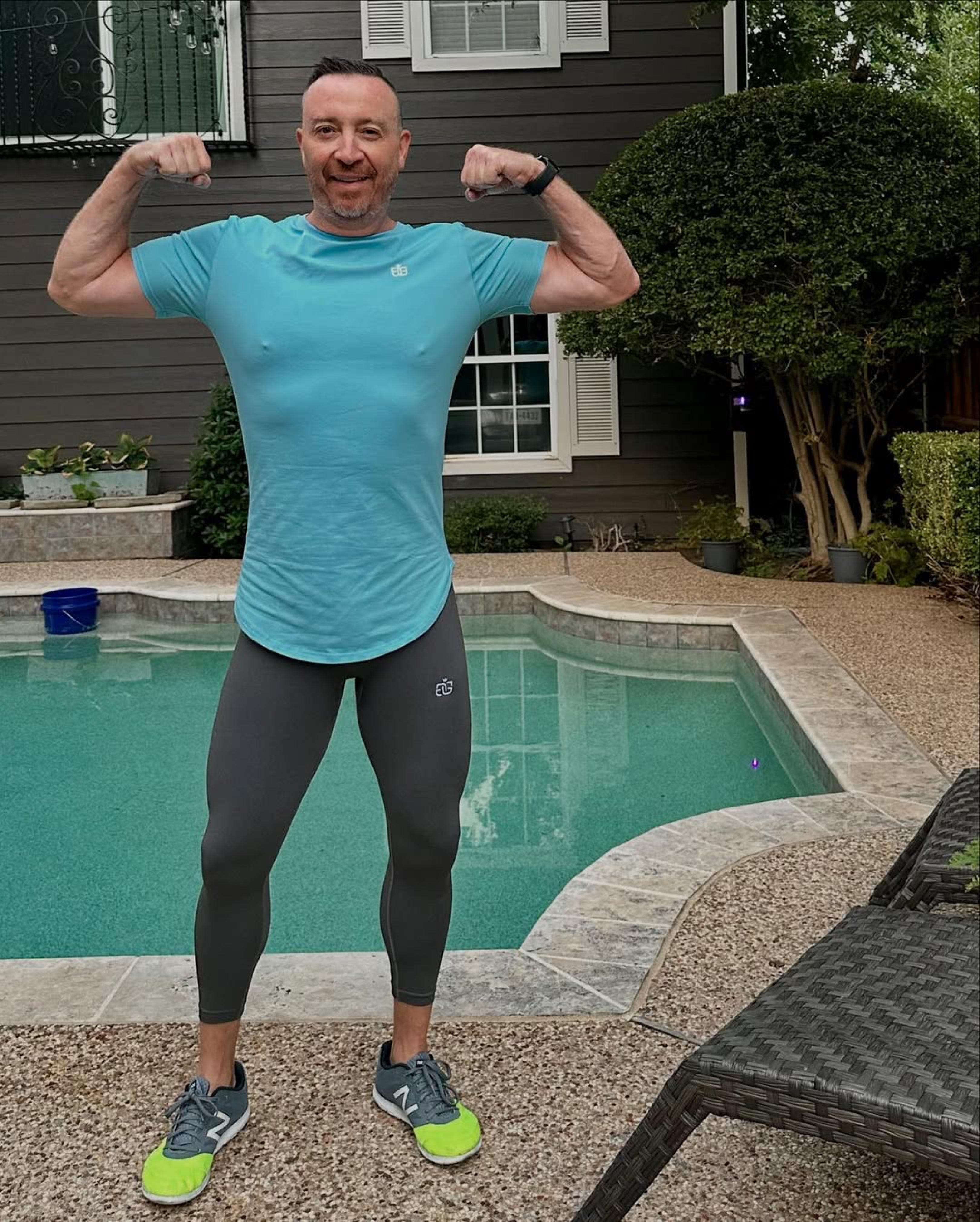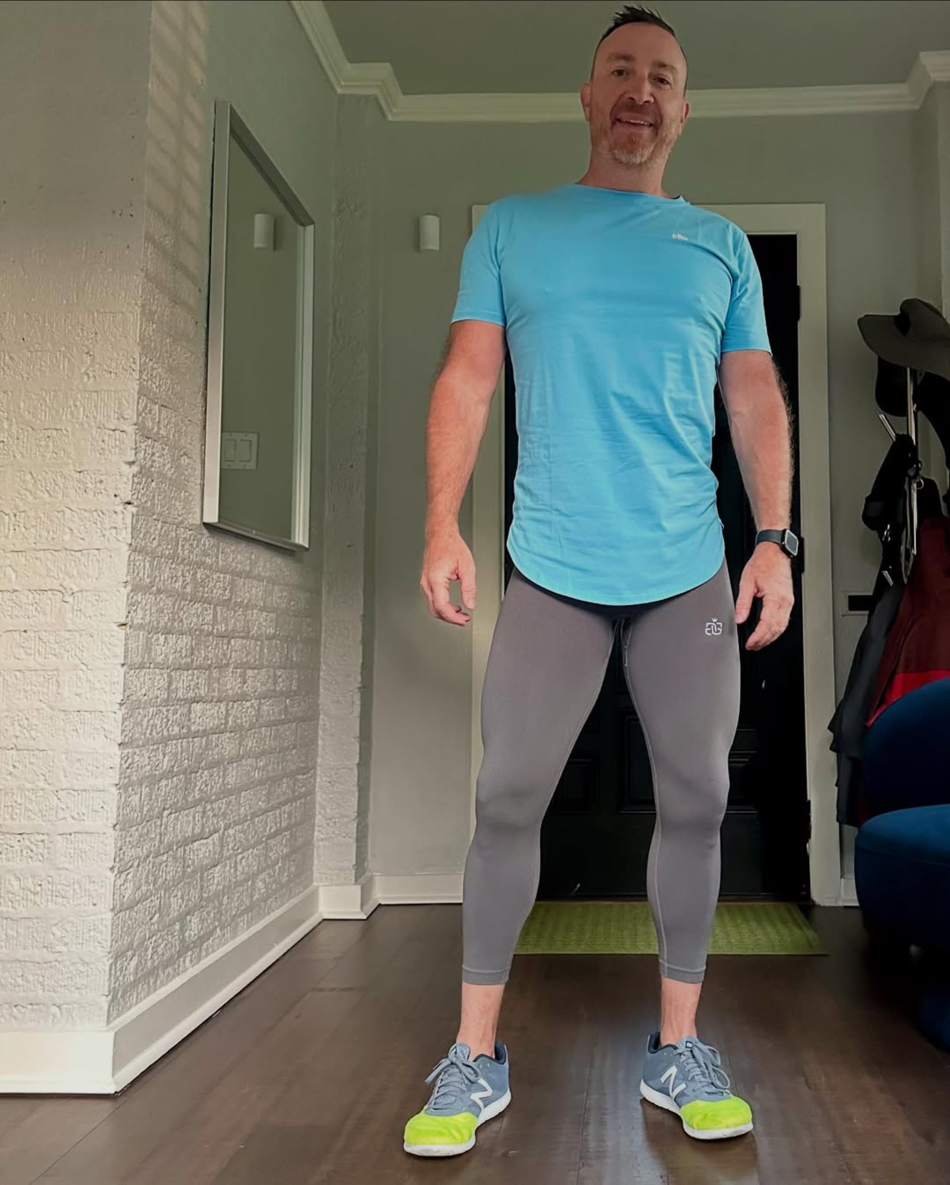 Great style, great sky blue color and pairs well with both the Signature and Scrunch Butt Leggings in many colors. Longer length helps if you like a little more modesty wearing the tights without shorts over them (Recommended!).