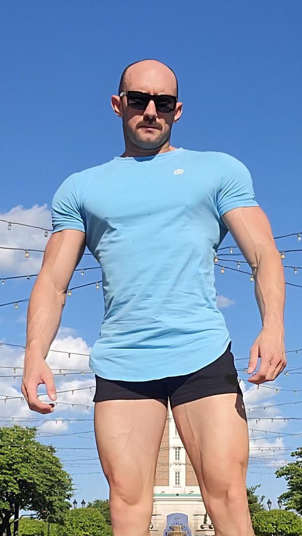 Elevate your style with our Deep Sky Blue Drop Cut Tee. Combining sleek design with premium comfort, our men’s athletic wear is crafted from ultra-soft, breathable fabric for all-day wearability in and out of the gym.