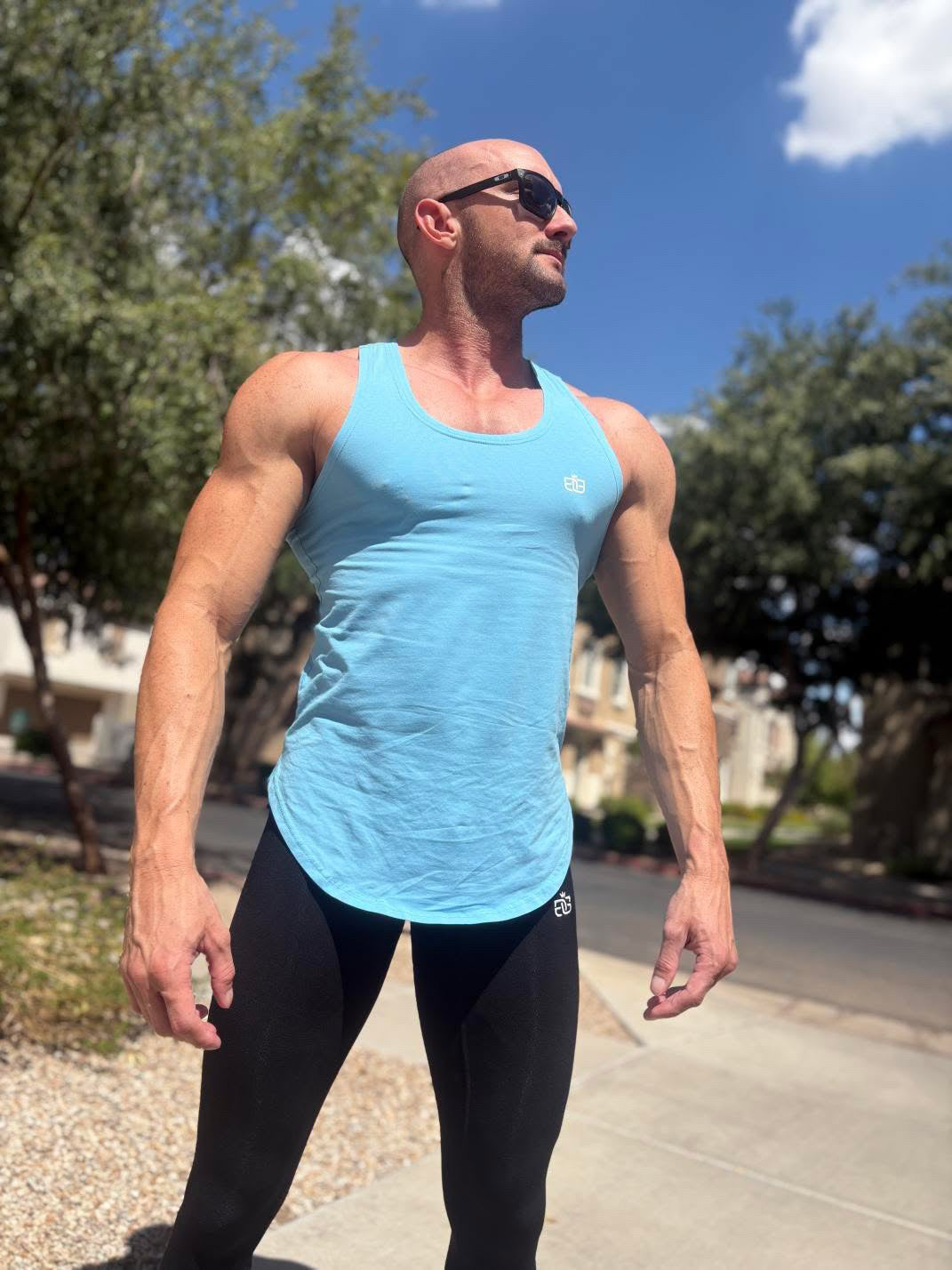 Whether you're hitting the gym, running errands, or stepping out for the night, the Deep Sky Blue Drop Cut Tank keeps you looking sharp and confident.